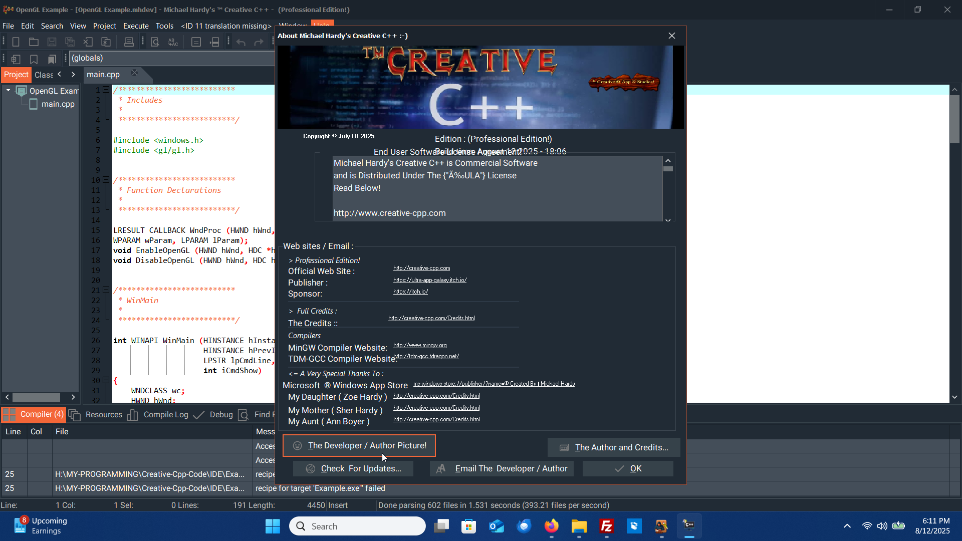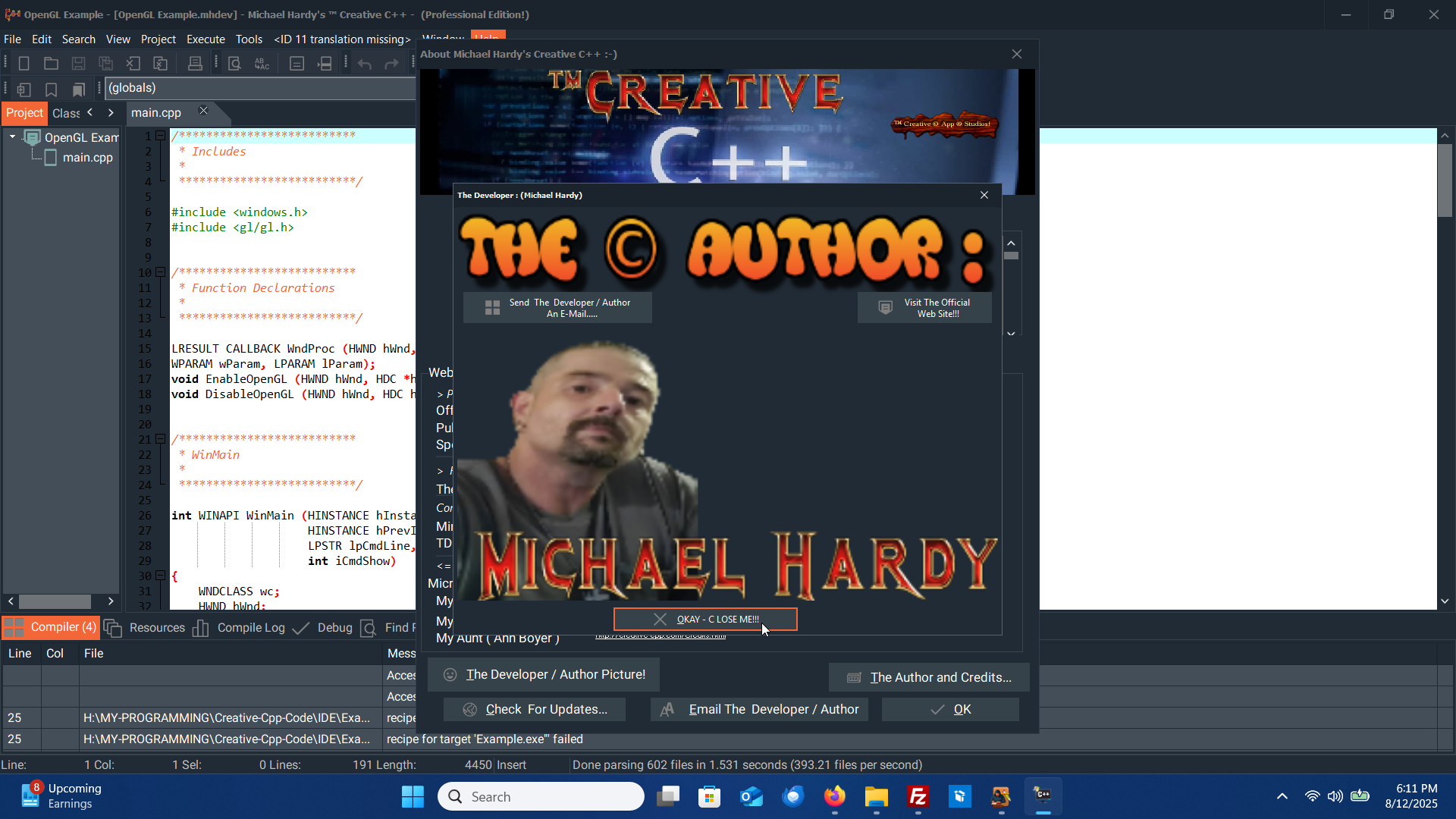 Michael Hardy's ™ Creative C++ is a New and improved Professional IDE and Compiler For The C / C++ Programming Language! .